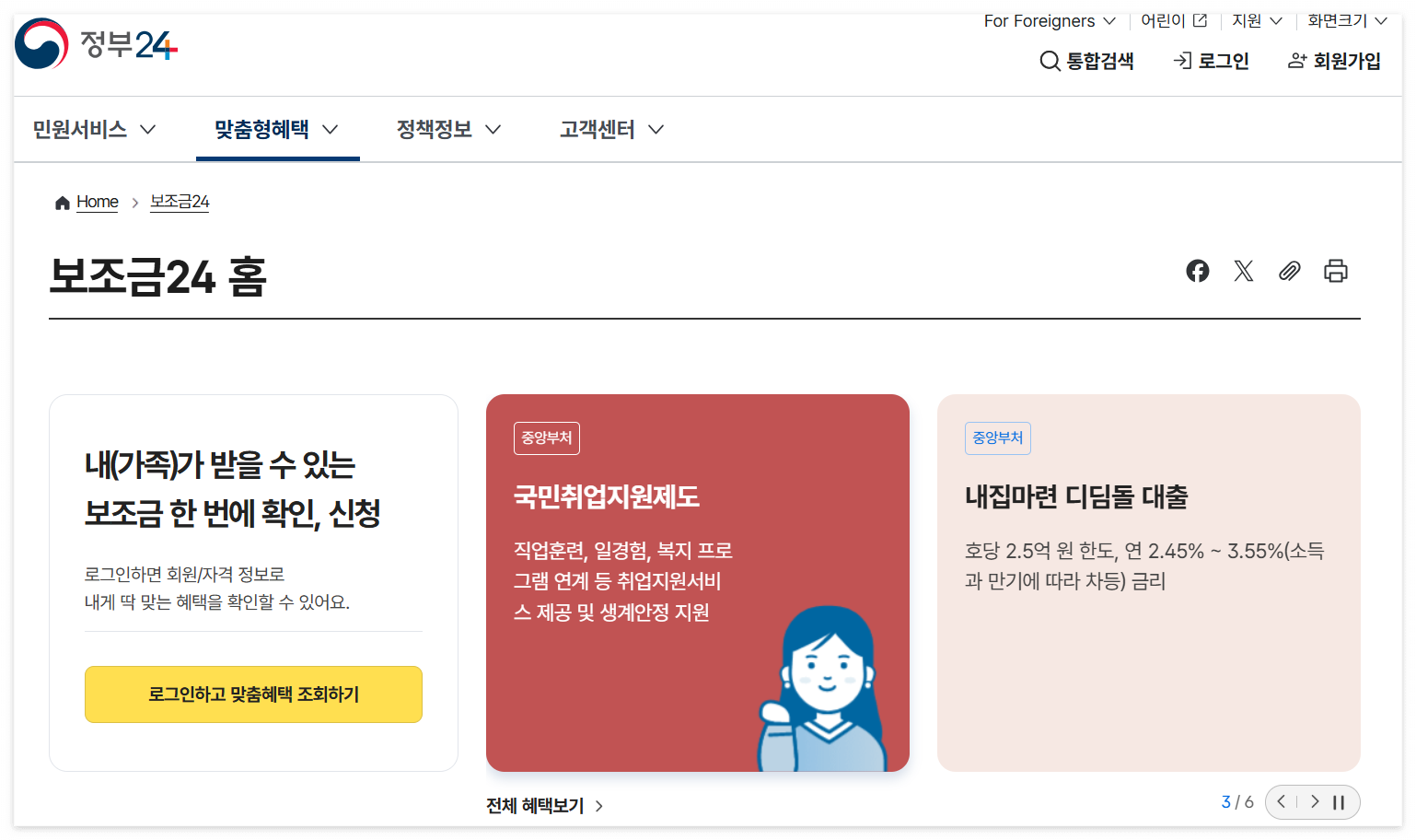 | 청년 | 만 19세~34세, 미취업자 | 월 50만원 구직지원금 |